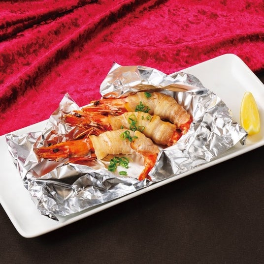 4F:本格焼肉&ジンギスカン ばくよう亭「有頭海老の豚バラ肉巻きホイル焼き」