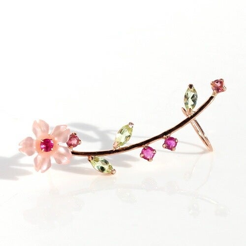 ピンク蝶貝×カラージュエル×ピンクゴールドイヤーカフ・ルイセリゼ