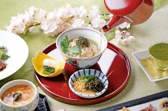 煎茶ベースの出汁をかけてお召し上がりいただく、「鯛茶漬け会席(6,000円・税サ込)」は平日ランチ限定で4月25日(金)まで!羽衣の多彩なお食事をお愉しみください