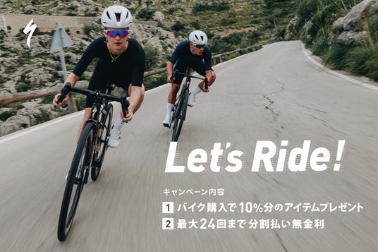 ライドのスタートやアップデートを応援する「Let's Ride! キャンペーン」を2025年5月31日(土)まで開催中。期間中、スペシャライズド正規販売店でスペシャライズドバイクをご購入いただくと、購入金額10%分の自由に選べるアイテムがもらえるほか、条件を満たすとショッピングクレジットの金利手数料が無料となります。スペシャライズドは、ペダルをこぎ続けるあなたを応援します。