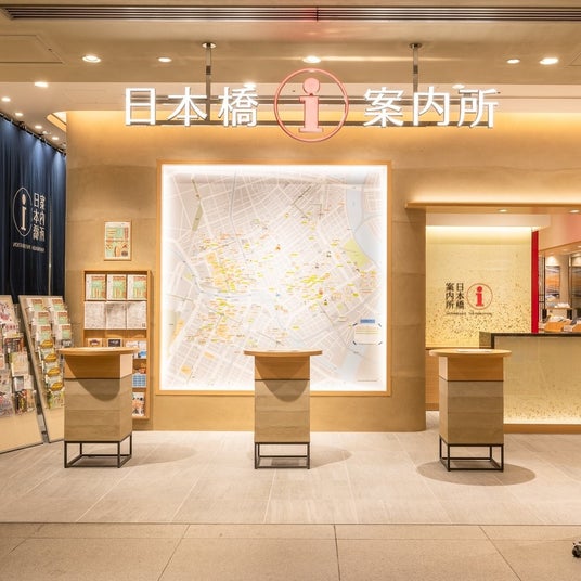 日本橋に数多くある老舗や観光スポットのご案内、イベントやお祭りの情報など、街の楽しみ方を発信する複合型インフォメーション。日本橋の各エリアの特徴がひと目で分かる約2.5メートル四方の巨大マップや、多言語のパンフレットをはじめ、選りすぐりの老舗の名品や人気店の逸品など、日本橋ならではの手みやげも販売。また、常駐の外国人コンシェルジュによる英語の文化体験ツアーやワークショップも実施しています。