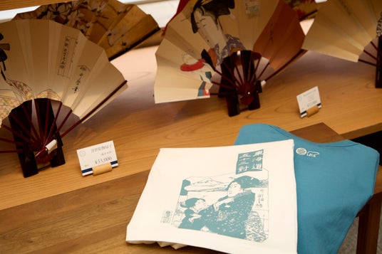 Tシャツには歌川国芳が描いた、東海道五十三對の「日本橋」をプリントしました。看板にリンクしたカラーにもご注目ください。