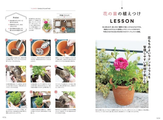 大好きな花をメインに、こだわった鉢やお気に入りの雑貨、限りあるスペースだからこそのレイアウトやアイディア、自分で育てた植物の生活への取り入れ方など、マネしたくなるあれこれが満載です。