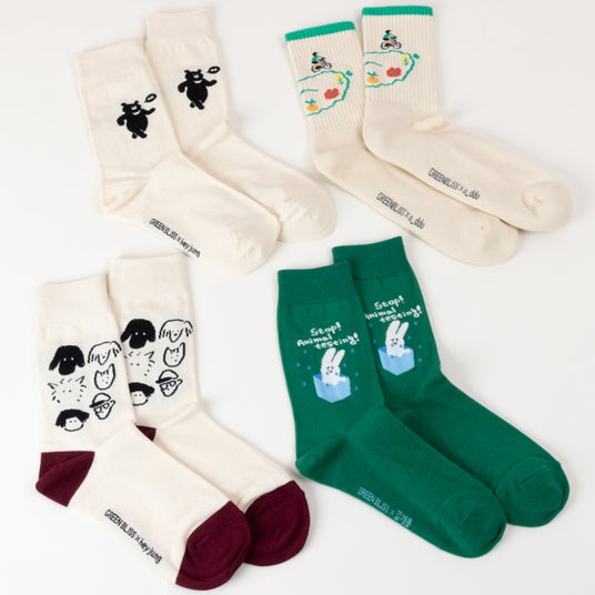 環境へ配慮し、オーガニック素材を使用した韓国発のブランド。動物や植物など印象的なデザインの靴下、ハンカチを展開します。