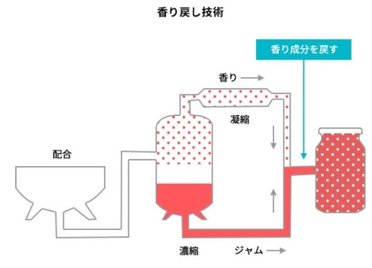 ※ 香り戻し技術:製造工程中に蒸発するフルーツのさわやかでフルーティーな香りをジャムの中に戻すことで、生の果実に近いフルーツ本来の香りに近づけます。
