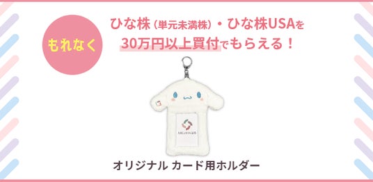 条件3.ひな株(単元未満株)・ひな株USAを30万円以上買付+エントリーいただいたお客さまに、もれなく「オリジナルカード用ホルダー」をプレゼント!!(※2)
