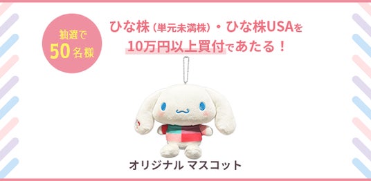 条件2.ひな株(単元未満株)・ひな株USAを10万円以上買付+エントリーいただいたお客さまの中から抽選で50名さまに「オリジナルマスコット」をプレゼント!!