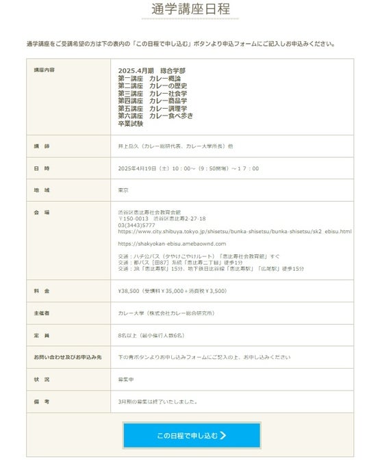 カレー大學が提供する幅広い知識と実践の一端を体験できるまたとない機会です。