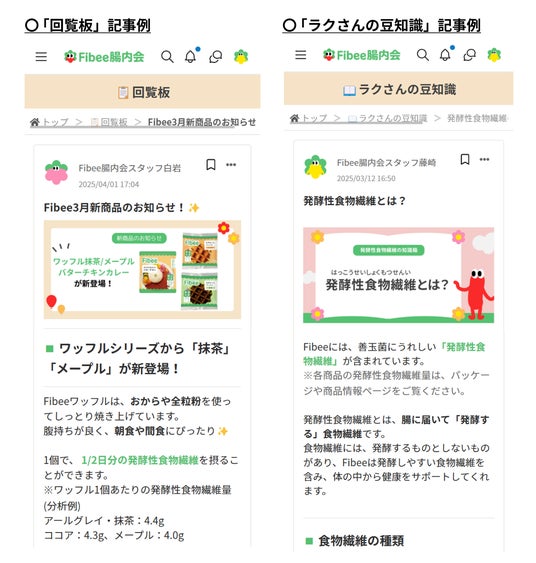 2024年春の「Fibee」発売開始以降、SNSでの情報発信や、「Fibeeアンバサダープログラム」の取り組み、販路拡大等に伴い、お客様のFibeeに対する感想、ご意見、ご提案といったお声が、WebやSNS上で投稿として徐々に増えてきました。Fibeeをご愛顧いただいているお客様や、「購入したことはないけれど興味がある」お客様へ向けて、Fibeeや発酵性食物繊維の情報を共有し合える場所として、この度「Fibee腸内会」をオープンいたします。