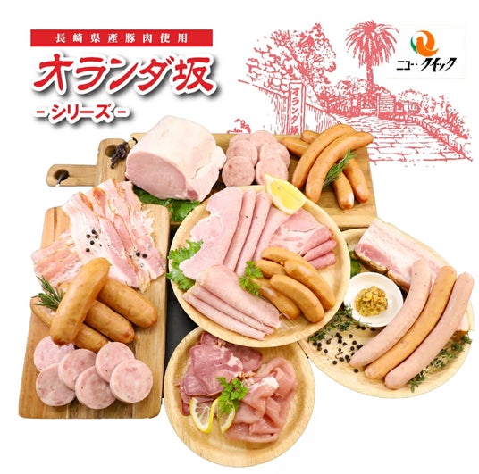 「オランダ坂ハム」「オランダ坂ベーコン」は、長崎県産豚肉を使用し、長崎県で製造された商品です。長崎は日本におけるハム・ソーセージ発祥の地と言われ、その歴史的背景を商品名「オランダ坂」に込めています。最新製法を採用しつつも、ハム本来の昔ながらの味を追求した高品質な一品です。