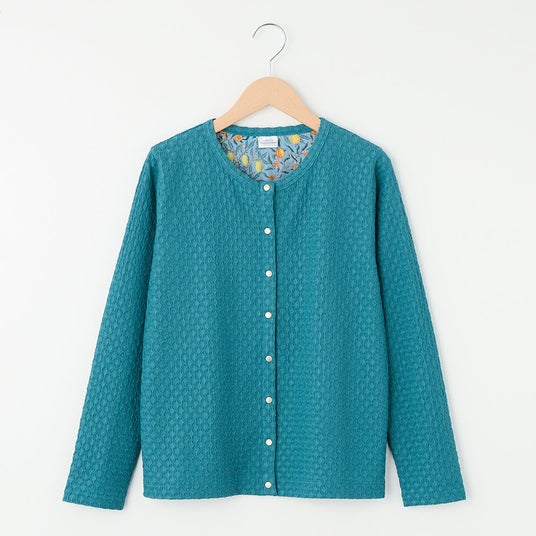 柄は前立て裏と背当部の部分使いとし、普段でも着やすいデザインです。縦方向にシボを出した楊柳(ようりゅう)素材の表面感がトレンド感を打ち出しています。大人世代に人気の鮮やかなターコイズカラーも展開しています。