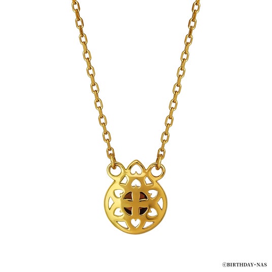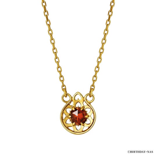 ふたごのプリンセスが持つアイテム「サニールーチェ」にもデザインされているプロミネンスの紋章をモチーフに、2人をイメージした天然石を使ったリバーシブルネックレスです。上質なスターリングシルバーで細やかな透かし模様を施し、中心には瑞々しいローズカットの天然石がきらめきます。ローズカットは“バラのつぼみ”のようなふっくらとした立体的なカットで、これから成長し、花開いていくプリンセスの姿も思わせます。細部までこだわったデザインは、大人もデイリー使いできる本格的なジュエリーに仕上がっています。