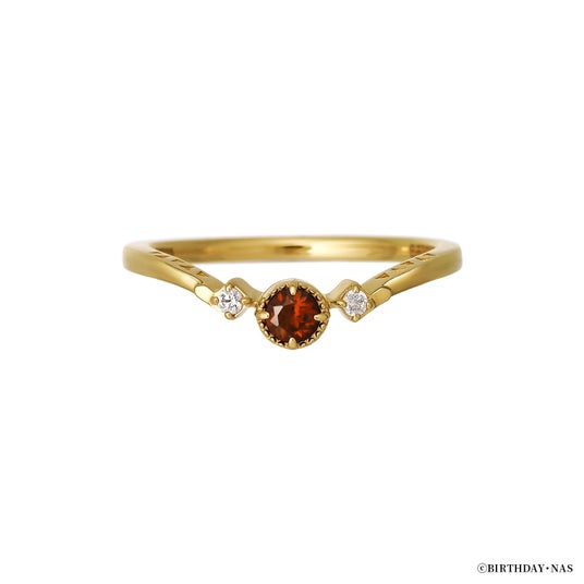 明るく元気いっぱいなファインの赤い髪をイメージし、鮮やかなガーネットをセッティング。