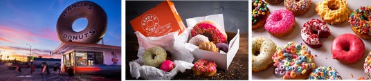 「ランディーズドーナツ」は、1952年にロサンゼルスで創業した大人気ドーナツ店です。特に、米国1号店の屋根上にそびえ立つ直径約10m(32フィート)の巨大なドーナツ型サイン看板が古くから街のシンボルとなっており、人気映画やミュージックビデオ、著名人のSNSなどにも登場するなど、ロサンゼルスのランドマークとして広く知られています。また、人気ブランドとのコラボレーションも多く、地元の人々はもちろんのこと、観光客にも必見のスポットです。