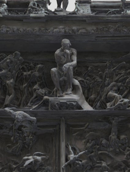 《地獄の門》3Dモデルの鑑賞例:地獄の門の上部に位置する《考える人》を下から拡大した場合