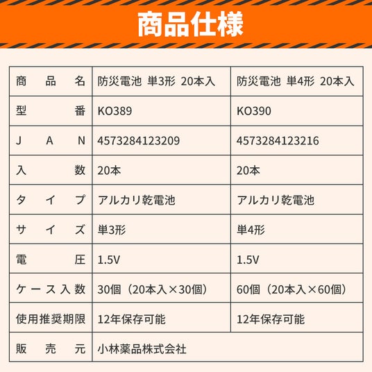 12年保管可能 防災備蓄品に最適!防災電池 KO389 単3形/KO390 単4形 新発売のお知らせ