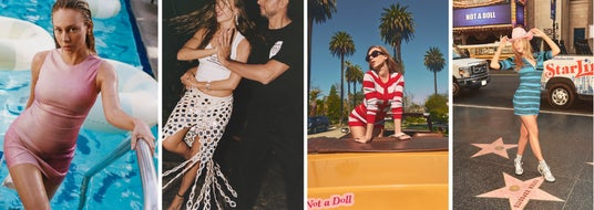 エステルが夢の都ロサンゼルスで日々を楽しむ中、デシグアルの新作SS25コレクションが披露されます。たとえば、LAのヤシの木の下でポーズを決める、赤とスカイブルーのストライプが施されたショーツとセーターのセットアップ、歓喜の瞬間を象徴するようにルーズベルトホテルのプールにダイブするピンクのグラデーション・スパンコールドレス、そしてサルサダンスでその才能を発揮する際に映える、ミラーがあしらわれた白いマクラメスカートなど、印象的なロケーションで刻まれた思い出を彩るアイテムが揃っています。
