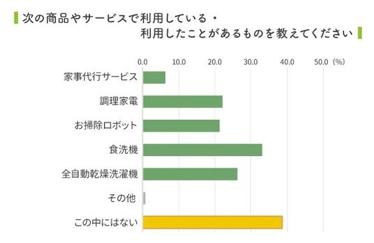 時短やスマート家事が注目されていますが、子育て世代の皆さんはどのような商品やサービスを利用しているのでしょうか?回答は以下の通り。