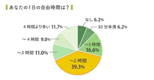 仕事や家事に追われない「1日の自由時間」を聞くと、多い回答から「1~2時間(39.3%)」「1時間以内(16.6%)」と並びました。特に子どもが未就学児のうちは「おはようからおやすみまで目が離せない!」という方も多く、まとまった自由時間は取れないですよね。