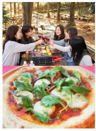 グリーニア場内にあるバーベキュー場では手軽にアウトドアクッキングが楽しめます。お肉や野菜が盛り合わせになったセットメニュー、人気の窯焼きピザ、デザートにはダッチオーブンで作る焼きリンゴがおすすめです。バーベキュー場の座席は、屋根付きエリア、木漏れ日エリアのほかにワンちゃんエリア(屋根なし)もあり、愛犬と一緒に利用いただくことも可能です。アスレチックで運動した後は、家族やグループでバーベキューをお楽しみいただけます。