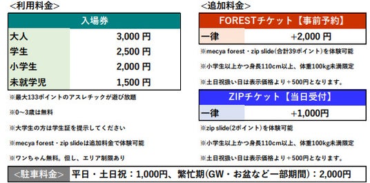 ※別途、六甲山アスレチックパークGREENIA入場料(GREENIAチケット)が必要