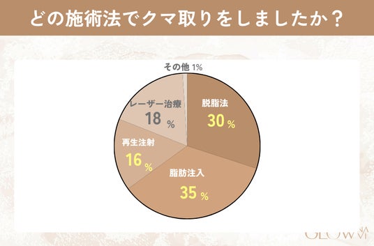クマ取りの施術法において、「脂肪注入」と「脱脂法」が30%以上と人気が高いことがわかりました。施術法によって効果や費用が異なるため、しっかり理解することをおすすめします。