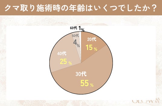 「30代」でクマ取りをした人が過半数を占めています。「30代」に入って年齢による見た目の変化に悩み始める人が多いと考えられます。