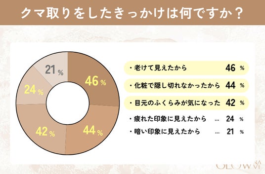 調査の結果、クマ取りをしたきっかけが「老けて見えたから」と答えた人が全体の46%と最も多いことがわかりました。