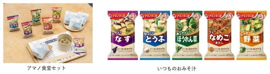 ・フリーズドライのおみそ汁とおにぎりのセット「アマノ食堂セット」を提供