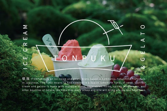 【上勝町】TONPUKU頓服する、=TONPUKUのジェラートを食べて回復すること。“回復”がコンセプトのクラフトジェラートブランド。上勝町で丁寧なジェラートづくりと実店舗を営業する。山の工房ならではの草木をつかった味わいや、徳島県の農作物を丸ごとたっぷりとつかった季節ごとに移り変わる濃厚な果実のジェラートが特徴。