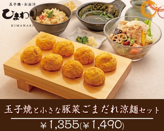 当店の特製お出汁をたっぷり使用した「玉子焼(明石焼)」と特製ごまだれにたっぷりの野菜と冷しゃぶ肉を一緒に食べる「豚菜ごまだれ涼麺」、特製お出汁を使用した「季節の炊き込みご飯」がセットになっ当店人気のメニューが季節限定販売!ぜひこの機会にご賞味ください。