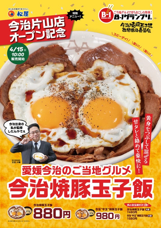 愛媛県今治市に「松屋・松のや複合店」がオープン 期間限定・店舗限定で、B-1グランプリ受賞「今治焼豚玉子飯」が新登場 ~2025年4月18日(金)10時 開店~