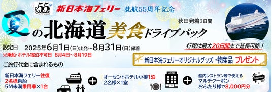 就航55周年記念 新日本海フェリー利用【夏の北海道 美食ドライブパック3日間 秋田発着】発売開始!
