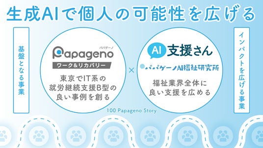 「生きててよかった」と誰もが実感できる社会を目指して、精神障害に関するリカバリー(自分らしい生き方の追求)を広める神奈川県立保健福祉大学発ベンチャー。企業のDX支援、精神障害のある方の就労支援、アートプロジェクト「100 Papageno Story(ワンハンドレッド・パパゲーノ・ストーリー)」を運営。2023年9月に就労継続支援B型「パパゲーノ Work & Recovery」を開所。2024年3月にAI支援記録アプリ「AI支援さん」をリリース。