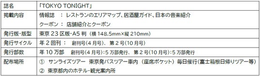 訪日外国人観光客向け国内パッケージ旅行「サンライズツアー」からナイトタイムクーポン&情報誌 「TOKYO TONIGHT」4月9日配布開始