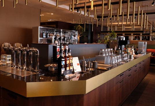 10mのビバレッジバーやライブキッチン、竹林を臨むスカイテラスとプールサイドデッキがあり、室内にいながら開放感満載。季節ごとに見せる竹林の風情も感じられ運が良ければ鹿に会えることも。