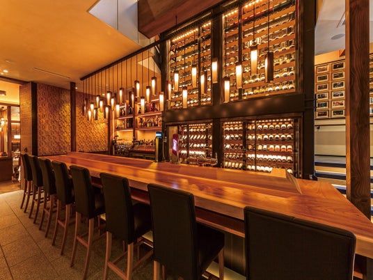 ・ 厳選されたワイン:吹き抜けを利用した迫力あるワインセラーには常時300種類をご用意