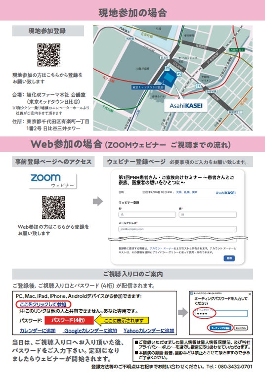 Web参加の方は事前登録ページ( https://asahi-kasei.zoom.us/webinar/register/WN_UWwumK7FQAirsAvMrUN4Bw#/registration )への登録をお願い致します