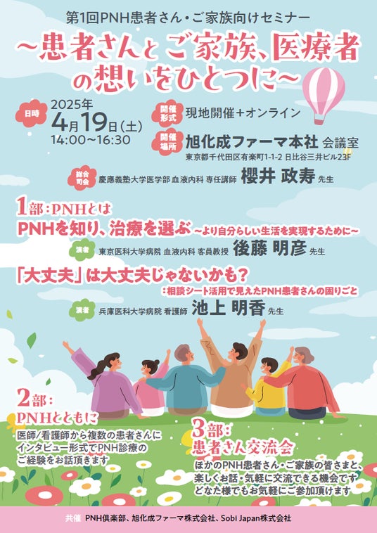 第1回PNH患者さん・ご家族向けセミナー(4/19開催・無料)~患者さんとご家族、医療者の想いをひとつに~のお知らせ
