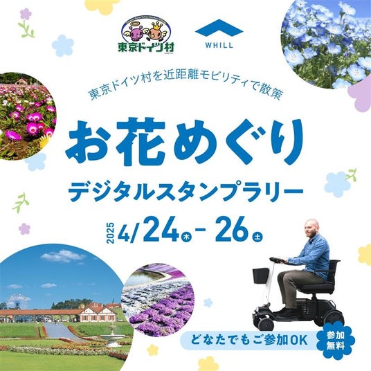 東京ドイツ村(所在地:千葉県袖ケ浦市、運営:明和興産株式会社)は2025年4月24日(木)より、WHILL株式会社(本社:東京都品川区、以下「WHILL社」)が開発する免許不要で自身で操作する近距離モビリティ「WHILL(ウィル)」を公園内でレンタルできる「WHILLモビリティサービス」を提供開始することを発表いたします。敷地面積約90ヘクタール(東京ドーム19個分)もの広さを誇るパーク内を、身体状況や年齢、国籍を問わずあらゆる人が自由かつ快適に散策できるアクセシブルな移動環境を提供することで、年間を通じて多くの来訪者を迎え入れるとともに、施設の魅力や体験価値向上を図ります。