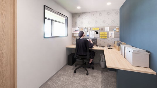当施設では、食事やWEB会議が可能なカフェブースと、集中作業に適したソロワークブースを完備。テレワークはもちろん、仕事終わりの資格取得勉強などリスキリング時間もシームレスに確保できます。デスク幅が広く、パソコンや資料を広げながらの作業も快適です。