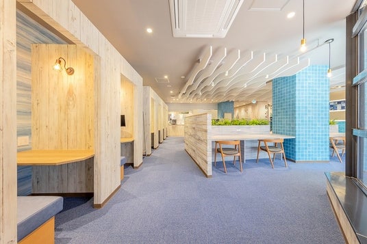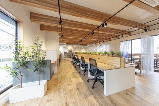 ■BIZcomfort湘南茅ヶ崎1~10名用のレンタルオフィスを備えた大型シェアオフィス。マリンテイストで開放感溢れるコワーキングスペースが特に好評です。