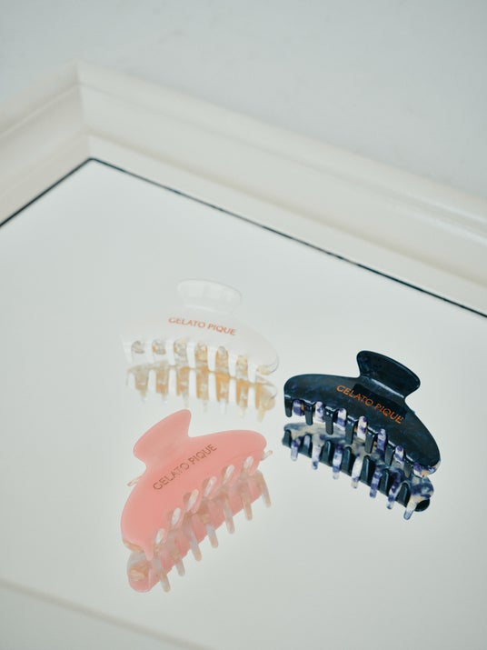 正面と背面で異なるアセチ素材を使用した、角度によって異なる表情を楽しめるヘアクリップ。ロングヘアもしっかり束ねられる使い勝手の良いサイズに仕上げました。同コレクションの雑貨やルームウェアと組み合わせて、ギフトにもおすすめです。