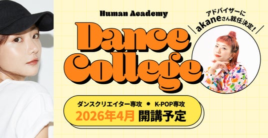 ●総合学園ヒューマンアカデミーで2026年4月に「ダンスカレッジ」が新規開講●世界で活躍する振付師akane氏がカレッジアドバイザーとして就任。カリキュラムも同氏が監修