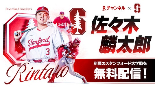 楽天グループ株式会社が運営する、無料のリニア型動画配信サービス「Rチャンネル」は、佐々木 麟太郎選手が所属するスタンフォード大学の、大学野球リーグのレギュラーシーズン注目試合13試合と「ACCトーナメント」戦を配信します。