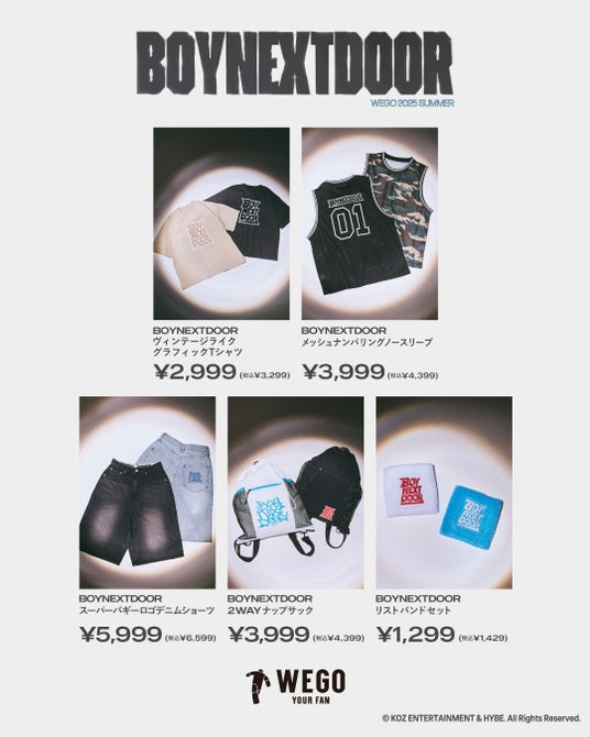 株式会社ウィゴー(本社:東京都港区芝浦 代表取締役社長:園田恭輔)では、WEGO 2025 SPRING & SUMMERビジュアルのモデルに、HYBE MUSIC GROUP傘下のKOZ ENTERTAINMENTに所属する次世代を担う6人組ボーイグループ『BOYNEXTDOOR』を起用しております。