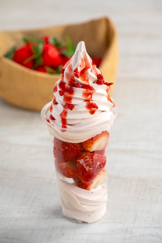 北海道産「豊富牛乳」使用の自家製ソフトクリームと甘酸っぱい生いちごのパフェ。