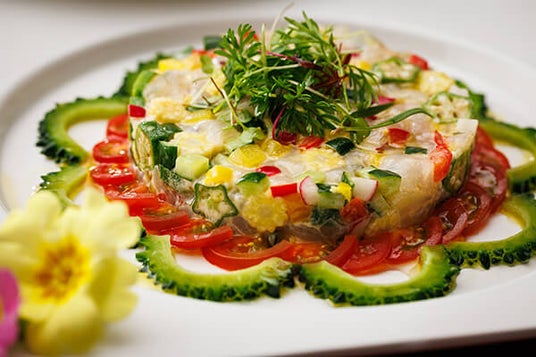 高知県で獲れた新鮮な鯛と、初夏に旬を迎える様々な野菜を細かく刻んで混ぜ合わせ、調味した、見た目も華やかな前菜です。