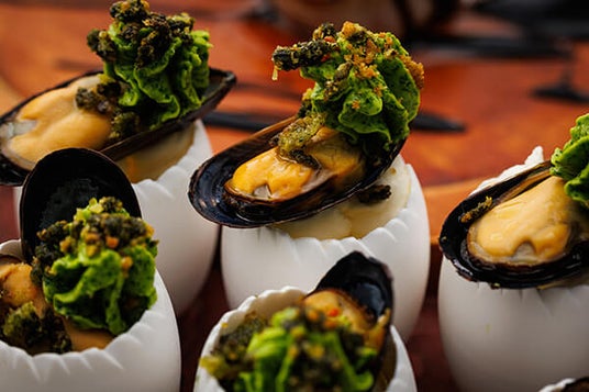フランス料理の定番である「エスカルゴのブルギニヨン」をムール貝でアレンジした料理です。エスカルゴの代わりにムール貝を使うことで、より磯の風味豊かに楽しむことができます。