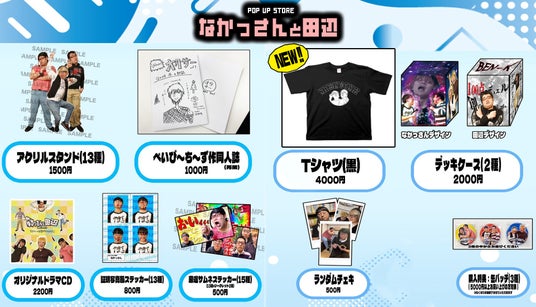 東京で開催したポップアップストアの内容をパワーアップさせ、「なかっさんと田辺」の世界を満喫できるポップアップストアをお届けいたします。アクリルスタンドやステッカー、ランダムチェキ、同人誌など、東京でも販売していたグッズも一部を除き引き続き販売いたします。さらに 『なかっさんと田辺の「部室」in大阪』限定の「オリジナルTシャツ」を販売予定です。